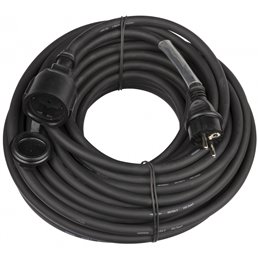Rallonge électrique. Câble 3G2.5, longueur 20m, avec connecteurs mâle/femelle allemands et une gaine thermo transparente de 7cm