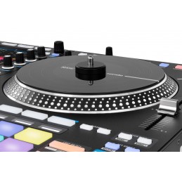 Le System One ne se contente pas d’être puissant : il restitue aussi des sensations de jeu dignes d’une véritable platine professionnelle. Ses deux plateaux motorisés en aluminium de 7,2 pouces à couple élevé offrent un contrôle ultra précis, complété par les faders Precision Feel à tension ajustable et le célèbre crossfader Mag Four, calibrable directement depuis l’écran tactile pour une réactivité optimale en scratch. Cet écran HD 7 pouces apporte une visibilité parfaite des formes d’onde RGB et un accès fluide aux informations essentielles du mix.