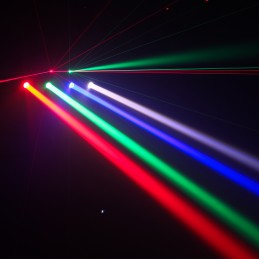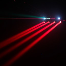 - Sources de lumière : 4 Lyres 40W RGBW (4-en-1) | 2 Lasers : Rouge 130mW et Vert 50mW | 2 Strobes 10W (Blanc)