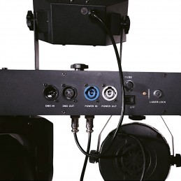 - Sources de lumière : 2 Lyres 40W avec Gobo et Ring Lumineux | Ring : 12 LEDs 5050 RGB (3-en-1) | 2 Par Led 6x8W RGBW | 2 Lasers : Rouge 130mW et Vert 50mW | 2 Strobes 10W (Blanc) | 2 Derby : 2x10W RGBW