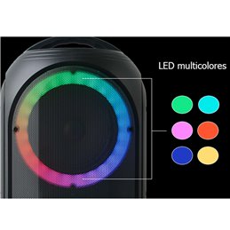Sono portable Bluetooth multi-fonctions Power Acoustics GOZIK LED intégrant lecteur USB, carte SD, entrée AUX, Micro et Guitare/Basse + Egaliseur + effet Echo/Reverb + Fonction Enregistrement. Façade équipée de LED Multicolore pour des effets d’animations dynamiques au rythme de la musique. Plusieurs patterns d’animation Light. Fonction Karaoké Bonus inclus pour faire le show !